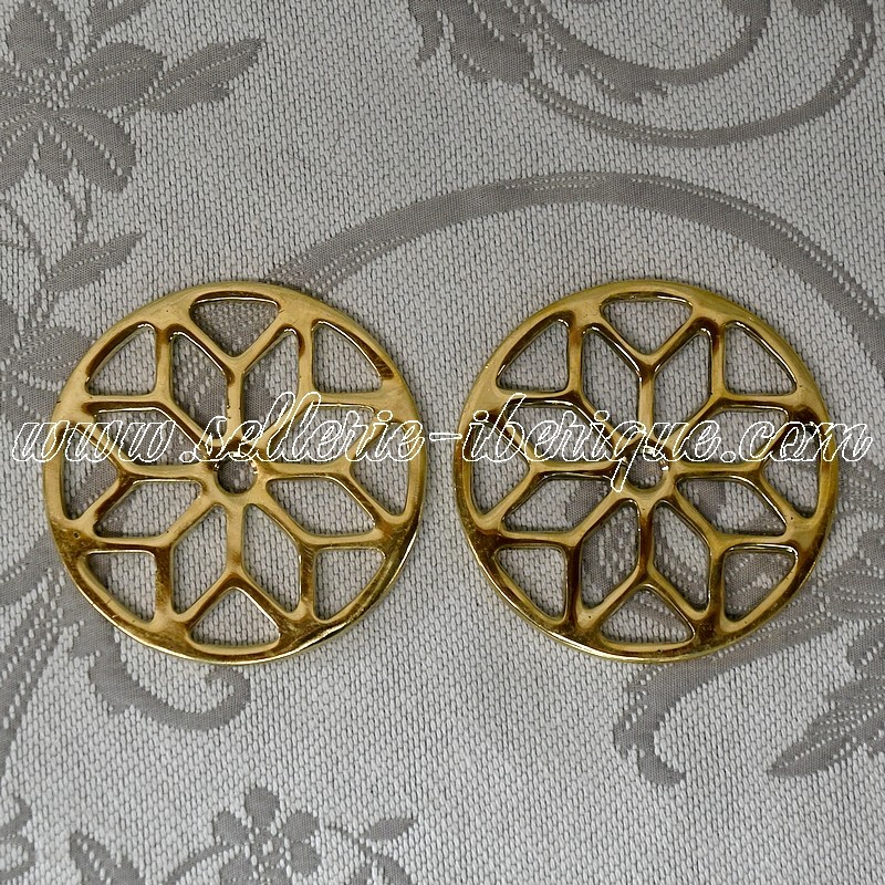 Branches de hackamore Real Escuela travaillées (paire). Coloris: doré ou argenté. Laiton (doré) ou laiton plaqué nickel (argenté).