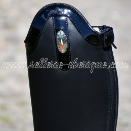 Bottes d'équitation en cuir Fellini. 100% MADE IN ITALY et fabriquées à la main par les Maîtres Artisans bottiers Fellini. Empeigne en cuir vachette. Semelles cousues et collées. Bande élastique à l'arrière pour un meilleur confort et un meilleur galbe. Taquets d’éperon fixé sur la protection de zip. Conformément aux articles L.121-20 et suivants du Code...
