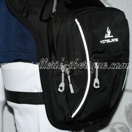 Removable thigh strap, adjustable in height thanks to the 3 loops on the back of the bag.