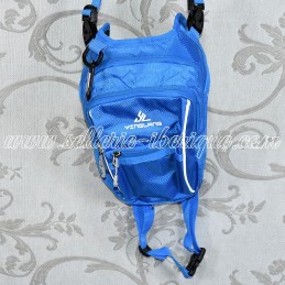 Sac banane avec gourde. Ceinture réglable de 57cm à 125cm (non élastique). Dimensions de la grande poche: largeur 32cm x hauteur 15cm x épaisseur 4cm. Dimensions de la petite poche: largeur 9cm x hauteur 15cm x épaisseur 3cm. Petite poche pour les clefs sur le côté: longueur 12cm. Capacité de la gourde: 600mL.