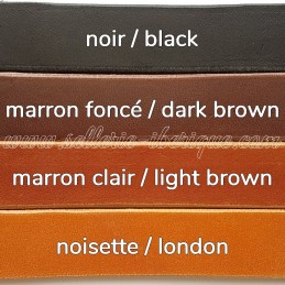 Croupière portugaise Marjoman, disponible en plusieurs coloris et plusieurs modèles de boucles. Cuir tannage végétal de qualité supérieure, boucles cousues à la main. Conformément aux articles L.121-20 et suivants du Code de la Consommation, étant confectionné selon les spécifications du consommateur, le droit de rétractation ne peut pas s'appliquer sur...