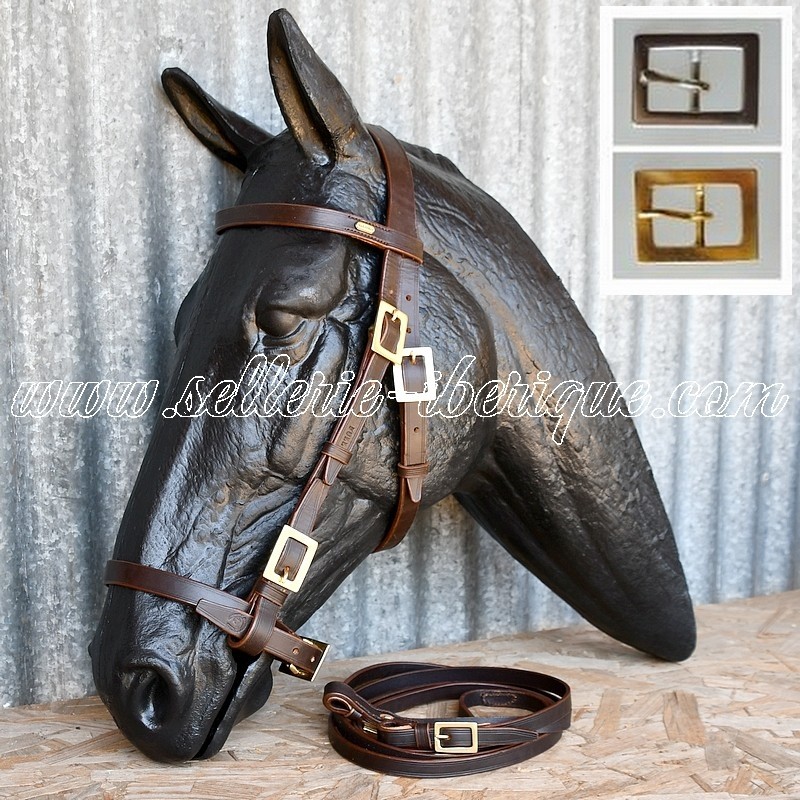 Bride portugaise Marjoman, disponible en plusieurs tailles, coloris et plusieurs modèles de boucles. Cuir tannage végétal de qualité supérieure, boucles cousues à la main. Conformément aux articles L.121-20 et suivants du Code de la Consommation, étant confectionné selon les spécifications du consommateur, le droit de rétractation ne peut pas s'appliquer...