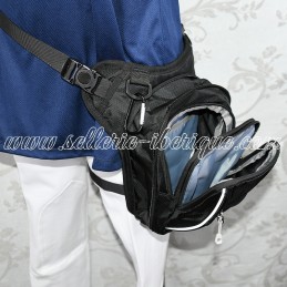 Sac de hanche multi-poches. Idéale pour l'équitation d'extérieur, le bricolage, les balades canines... 7 poches. Dimensions totales: hauteur 27cm - largeur 20cm - épaisseur 10cm. Sangle de cuisse amovible. Toutes les dimensions sont détaillées plus bas.