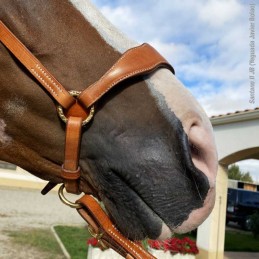 Licol de présentation espagnol. Vendu avec une longe assortie en cuir lisse.